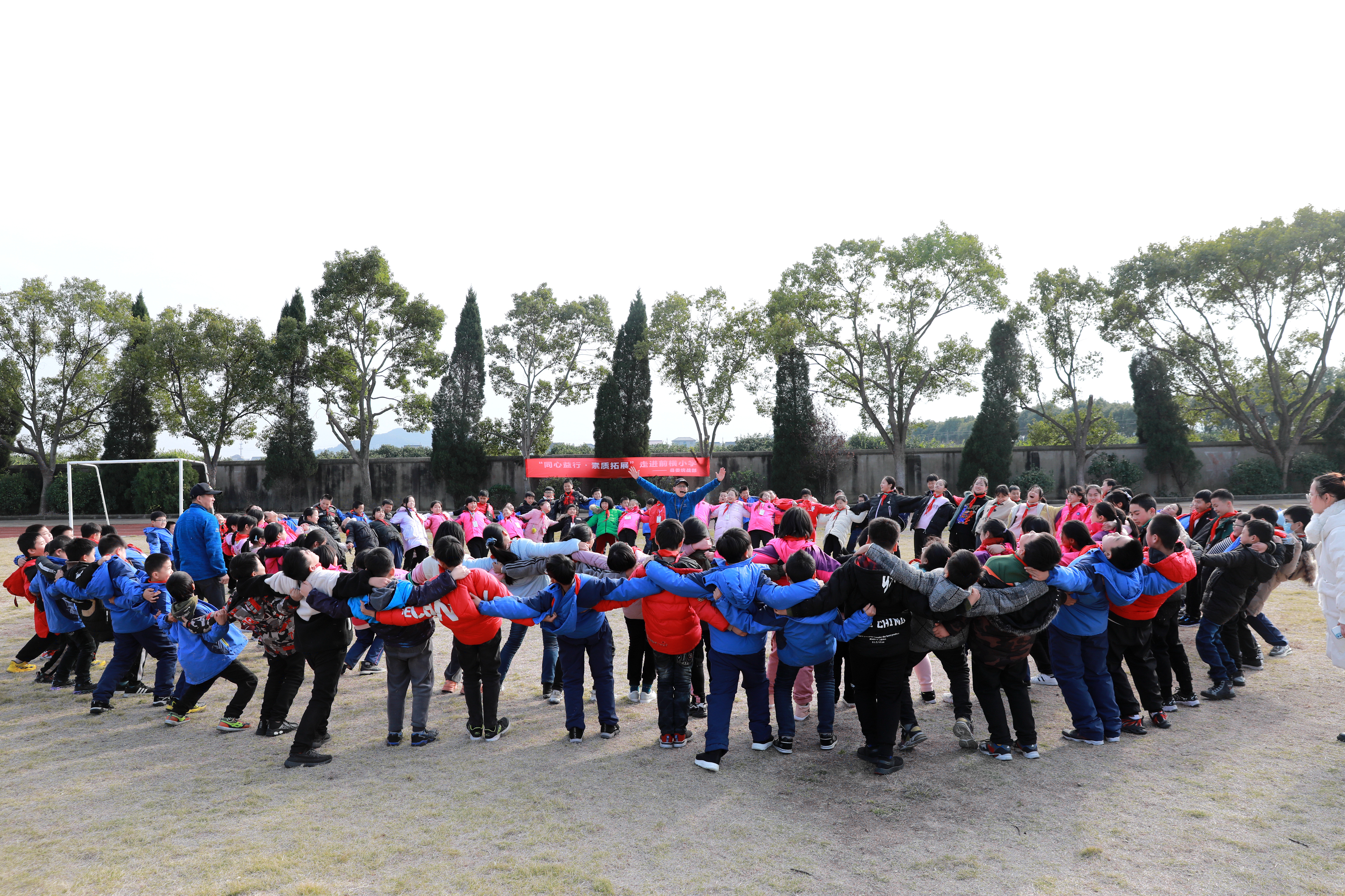 12月15日,宁海县委统战部“同心益行”系列活动走进前横小学,为全校220多名师生送去了一场特殊的盛宴。宁海县青年志愿服务中心负责人,宁波市红十字会救护师娄文斌盟员为学校三个年级的学生送去一场室外素质拓展课。
